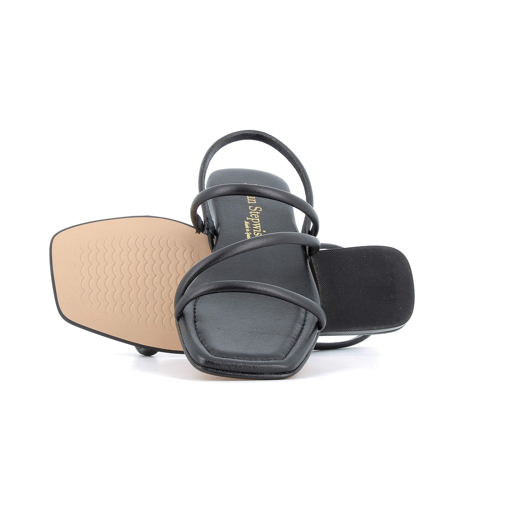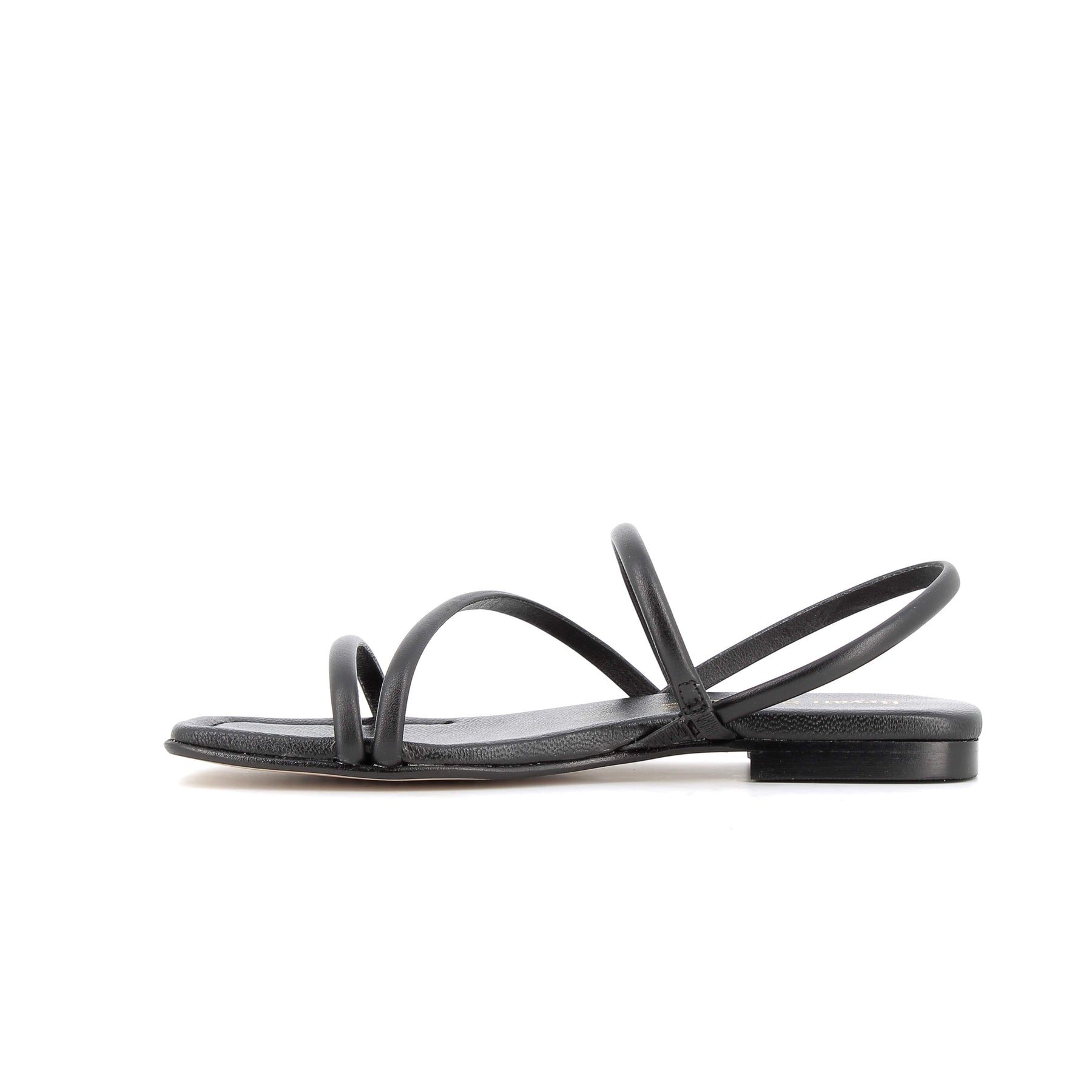 Sandalias negras de tiras y punta cuadrada. Estas de Bryan lo tienen todo para las sandalias planas favoritas del verano. Con tiras tubulares haciendo un dibujo en el pie y atadas al talón para una mayor sujeción.