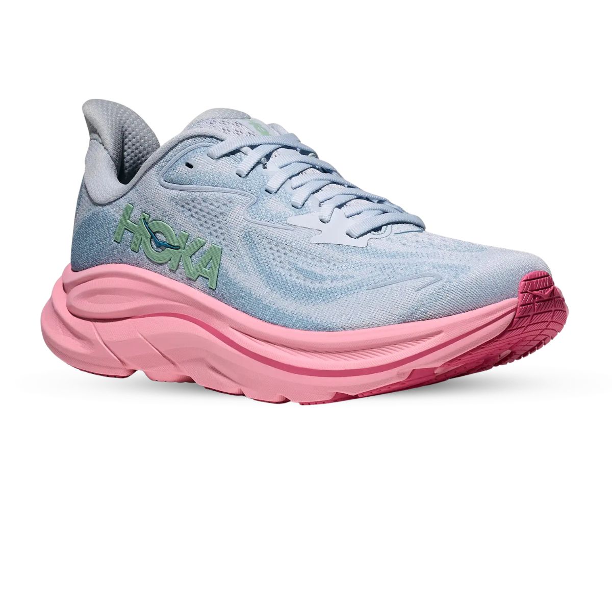 Las Hoka Clifton 10 para mujer en color OVERCAST (azul y rosa) son zapatillas de running diseñadas para ofrecer máxima comodidad, ligereza y rendimiento tanto en entrenamientos diarios como en carreras de larga distancia.